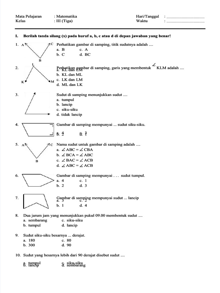 Artikel ini akan membawa Anda menyelami dunia soal HOTS yang berkaitan dengan macam-macam sudut untuk siswa kelas 3 SD. Kita akan membahas mengapa soal HOTS penting, jenis-jenis sudut yang relevan untuk jenjang ini, dan yang terpenting, bagaimana kita bisa menyajikan soal-soal yang mendorong pemikiran tingkat tinggi agar siswa tidak hanya hafal, tetapi benar-benar memahami konsep sudut.